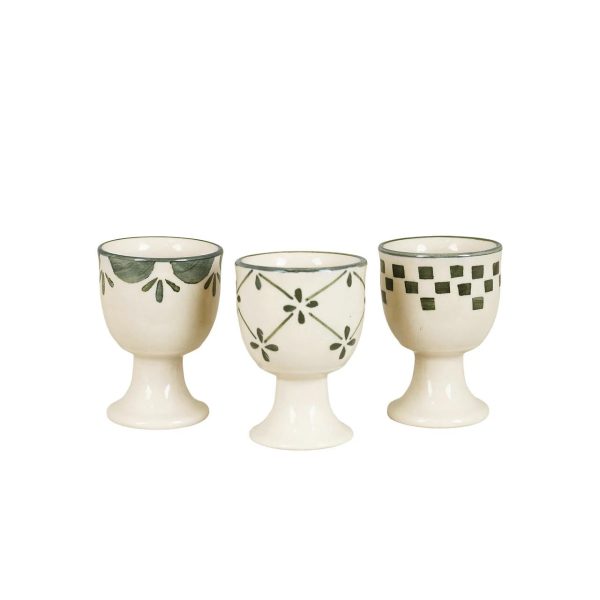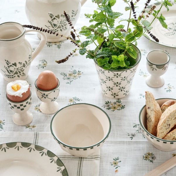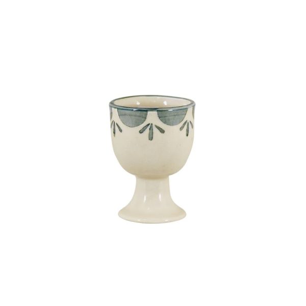 Äggkopp i stengods med handmålad dekorativ bård. Mönstret i serien Marion associerar tankarna till den franska landsbygden. Fina att kombinera och blanda med de andra motiven. Variationer kan förekomma i porslinet.