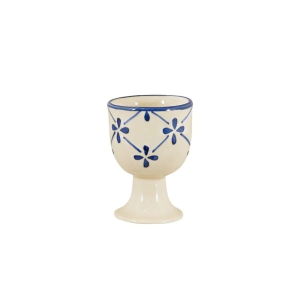 Äggkopp i stengods med handmålad dekorativ bård. Mönstret i serien Marion associerar tankarna till den franska landsbygden. Fina att kombinera och blanda med de andra motiven. Variationer kan förekomma i porslinet.