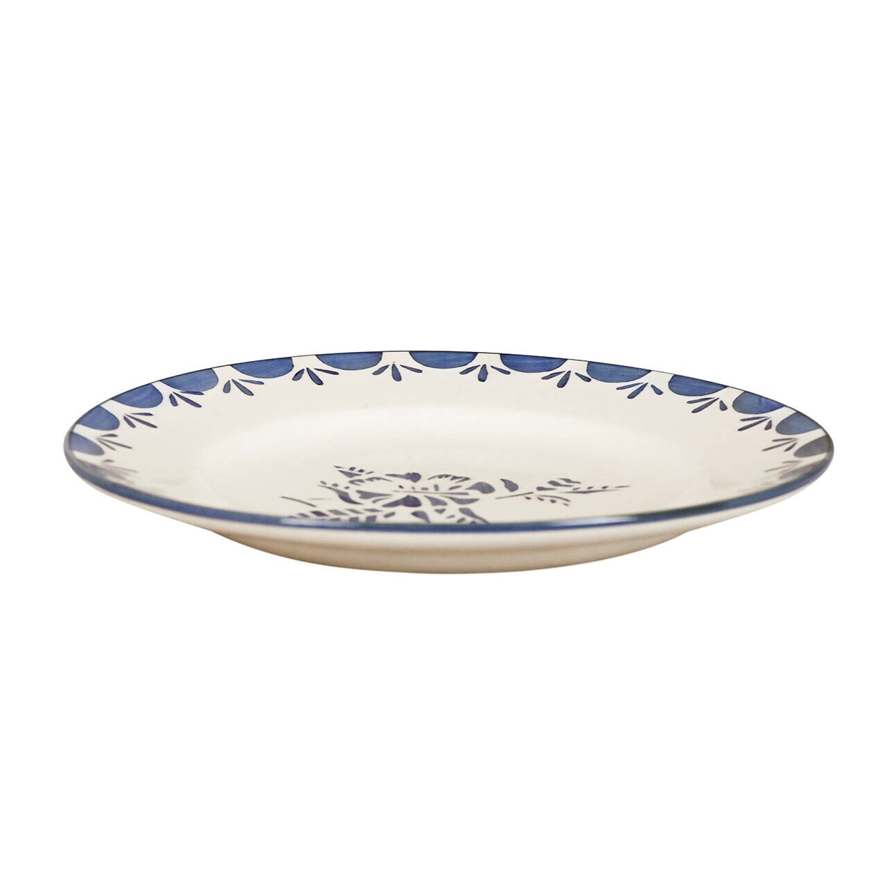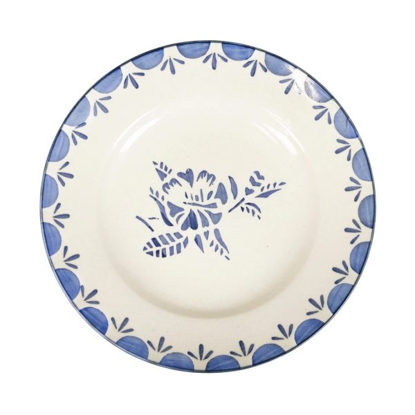 Assiett i stengods med handmålat gammaldags motiv av en blomma och dekorativ bård. Mönstret i serien Marion associerar tankarna till den franska landsbygden. Variationer kan förekomma i porslinet.