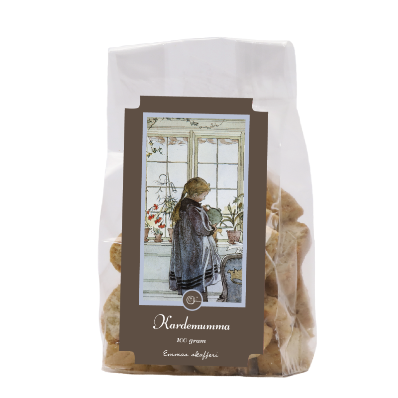 Ingredienser: VETEmjöl, margarin (solrosolja, rapsolja (fullhärdad), vatten, kokosfett, emulgeringsmedel E322, salt, surhetsreglerande medel E330, färgämne E160a, socker, laktosfri MJÖLK, HAVREgryn, ÄGG, kardemumma (2%), bakpulver och salt. Kan innehålla spår av nötter och mandel. Näringvärde per 100g: Energi 1900 kJ/ 460 kcal, fett 20g varv mättat fett 17g, kolhydrater 62g varav sockerarter 21g, protein 6g, salt 0g. Nettovikt: 180 g.