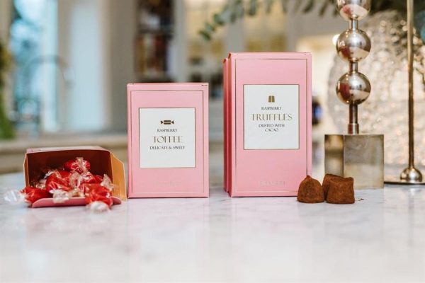 Chokladtryfflar med smak av hallon i lyxig förpackning.
