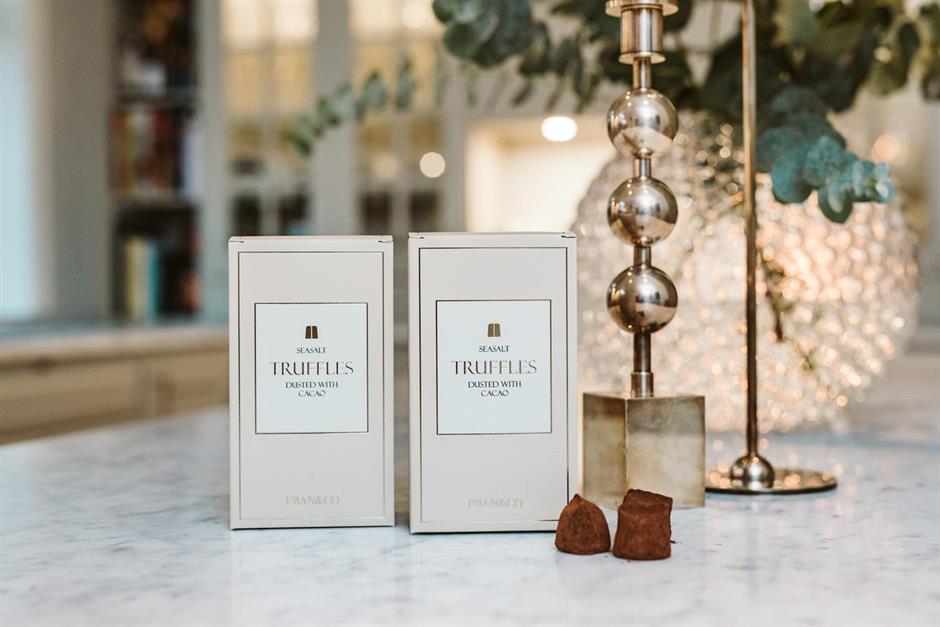 Chokladtryfflar med smak av havssalt i lyxig förpackning.