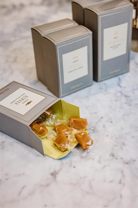 Ingredienser: Glukossirap, sockrad kondenserad mjölk (mjölk, socker), socker, vegetabiliskt fett (palm*, shea), salt, aromämnen, färgämne (E160a), surhetsreglerande medel (E330). Kan innehålla spår av mandel. *RSPO-Certifierad palmolja.