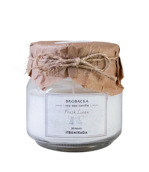 Fyll ditt hem med en känsla av nytvättade lakan med detta vackert designade Brobacka doftljus. Den rena och lätta doften av nytvättad linne ger en lugn och inbjudande atmosfär, perfekt för vardagsrummet, sovrummet eller badrummet. Det lilla formatet gör det enkelt att placera ljuset var som helst och skapa en avslappnande miljö, oavsett rum.
