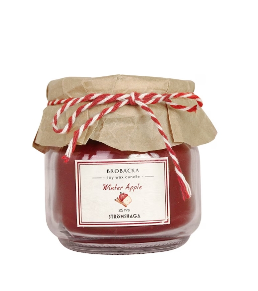 Fyll ditt hem med en doft av mustigt äpple som för tankarna till julens aromer, med detta vackert designade Brobacka doftljus. Doftljuset skapar en inbjudande atmosfär och är perfekt att tända under vinterkvällar för en extra känsla av hemtrevnad och säsongens dofter. Det lilla formatet gör det enkelt att placera ljuset var som helst och skapa en avslappnande miljö, oavsett rum.