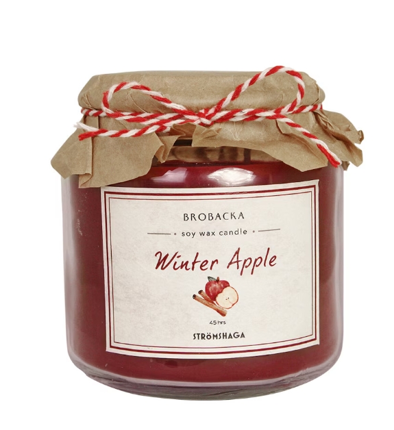 Fyll ditt hem med en doft av mustigt äpple som för tankarna till julens aromer, med detta vackert designade Brobacka doftljus. Doftljuset skapar en inbjudande atmosfär och är perfekt att tända under vinterkvällar för en extra känsla av hemtrevnad och säsongens dofter.