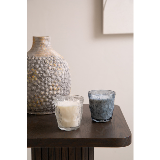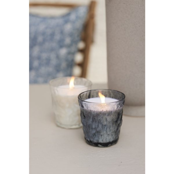 Otroligt fräscht doftljus i glaskopp med strukturerad yta.