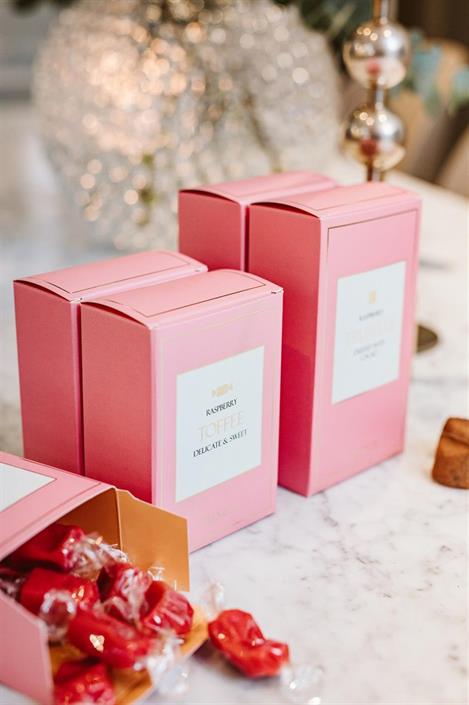 Mjuk kola med smak av hallon i lyxig förpackning.