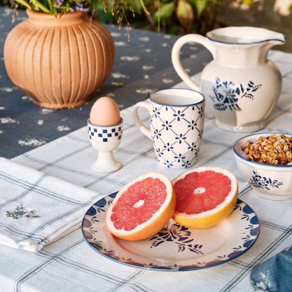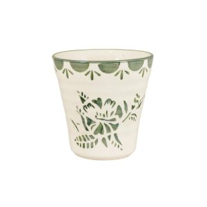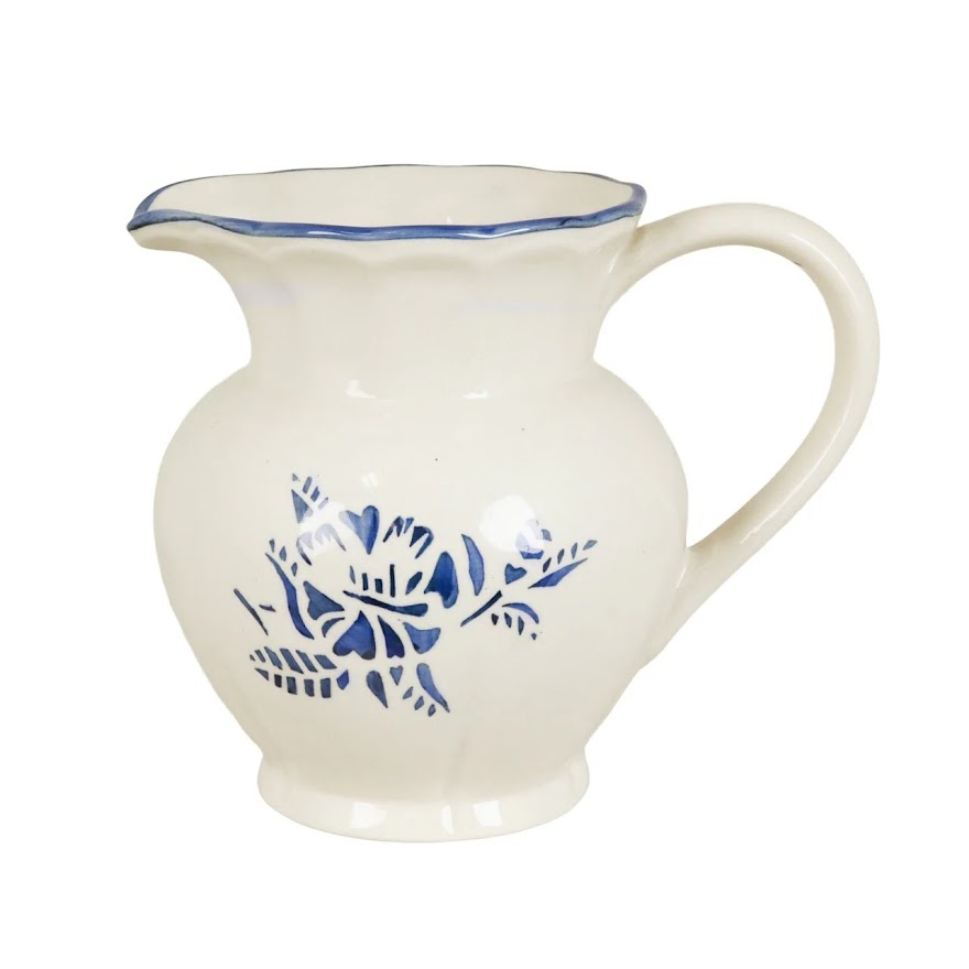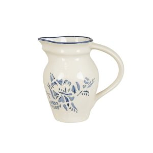 Vacker kanna i stengods med handmålat gammaldags motiv av en blomma och målad överkant. Mönstret i serien Marion associerar tankarna till den franska landsbygden. Denna kanna passar utmärkt till all sorts dryck eller som vas till  blomsterbuketten. Variationer kan förekomma i porslinet.