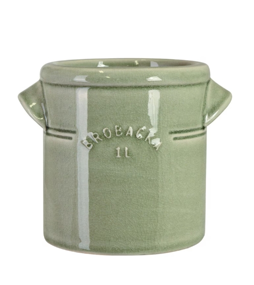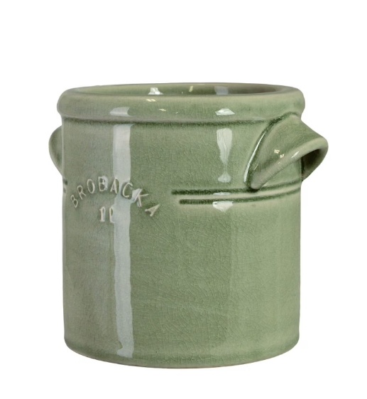 Keramikkrus i en vacker ljusgrön färg med dubbla handtag, perfekt för både praktisk förvaring, som kruka, vas och dekorativt inslag i hemmet. Med sin stilrena design och subtila glans är detta krus en tidlös klassiker som passar in i både lantlig och modern inredning. Perfekt för praktisk förvaring av exempelvis köksredskap – eller använd det som en charmig kruka för växter.