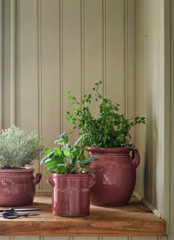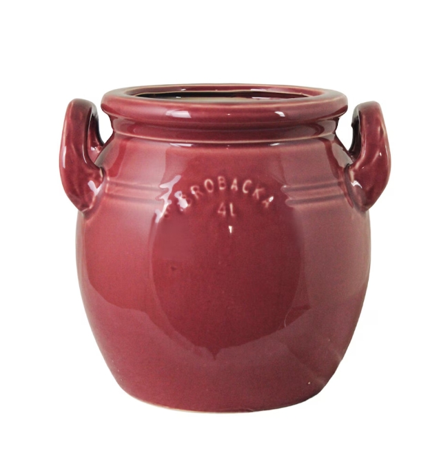 Keramikkrus i en vacker burgundyfärg med dubbla handtag, perfekt för både praktisk förvaring, som kruka och dekorativt inslag i hemmet. Med sin stilrena design och subtila glans är detta krus en tidlös klassiker som passar in i både lantlig och modern inredning. Perfekt för praktisk förvaring av exempelvis köksredskap – eller använd det som en charmig kruka för växter.