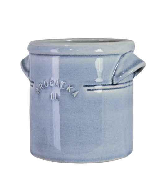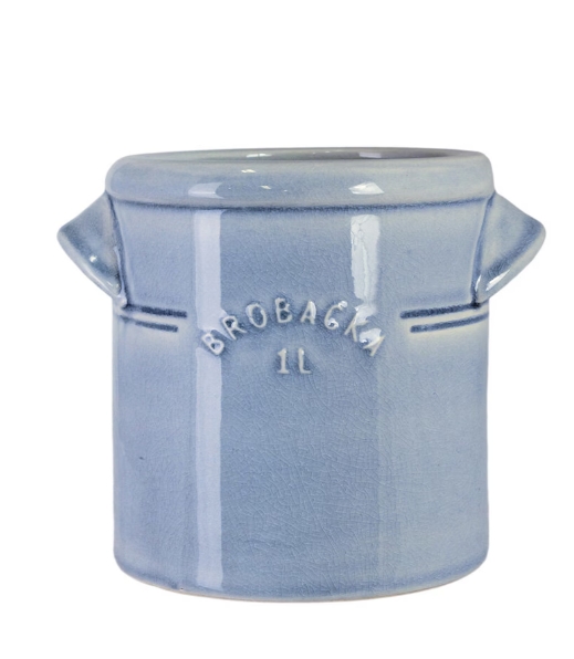 Keramikkrus i en vacker ljusblå färg med dubbla handtag, perfekt för både praktisk förvaring, som kruka, vas och dekorativt inslag i hemmet. Med sin stilrena design och subtila glans är detta krus en tidlös klassiker som passar in i både lantlig och modern inredning. Perfekt för praktisk förvaring av exempelvis köksredskap – eller använd det som en charmig kruka för växter.