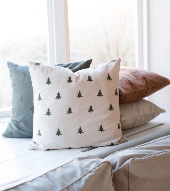 Se till att din kudde ser fantastisk ut med detta kuddfodral med broderade granar. Tillverkat av bomull. Perfekt när du vill ha den där julkänslan.