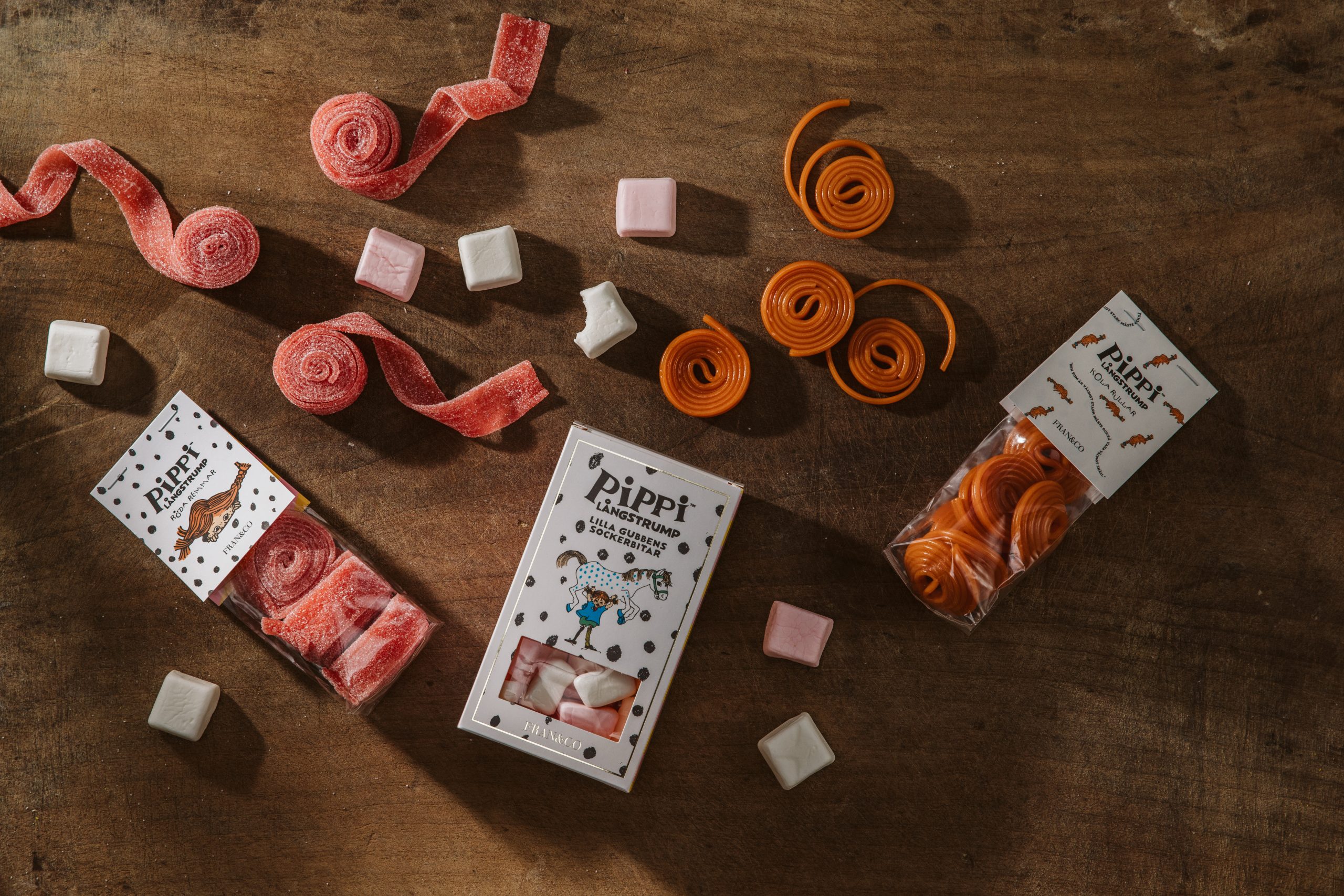 Ingredienser: Glukosfruktossirap, socker, majsstärkelse, gelatin, vegetabilisk olja (kokosolja), ytbehandlingsmedel (E903), konserveringsmedel (E270), arom (vanilin/jordgubb), färgämne (E120).