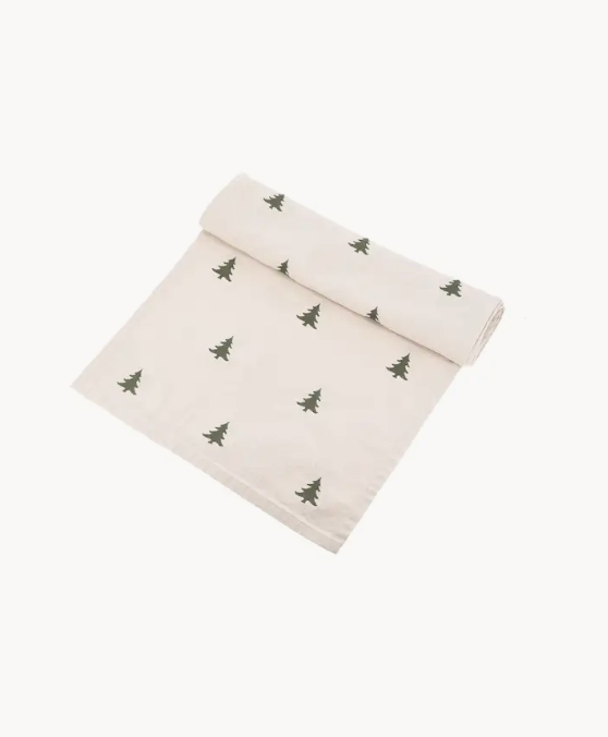 Ge bordet ett fint jultema med denna löpare med granmönster. Tillverkad i bomull.