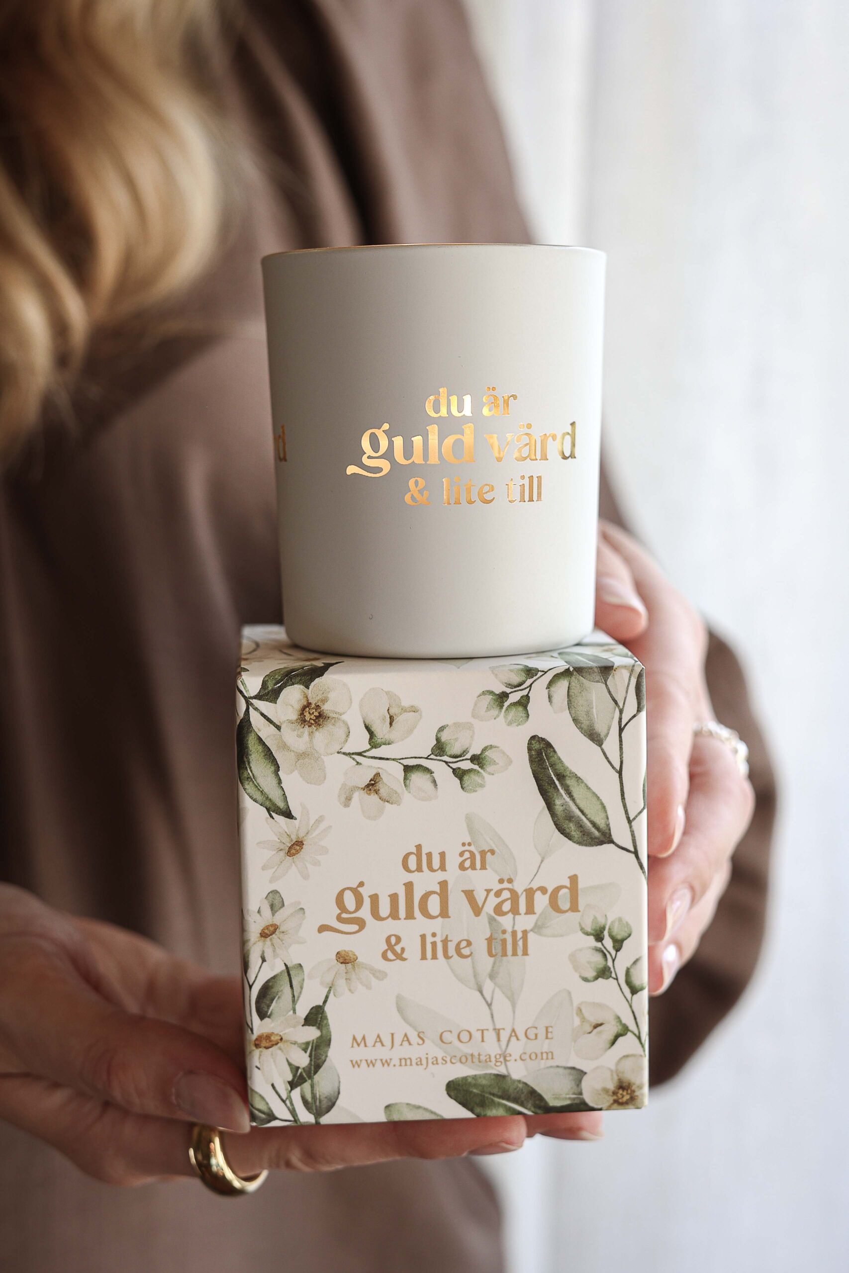 Berika hemmet och hylla någon särskild med den stilfulla ljuslyktan “Majas Cottage – Du är guld värd & lite till”. En elegant lykta i matt vit finish som utstrålar värme och omtanke – perfekt som gåva eller som en vacker detalj i din egen inredning.
