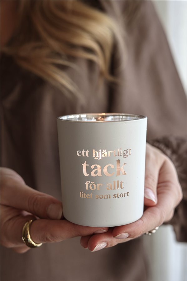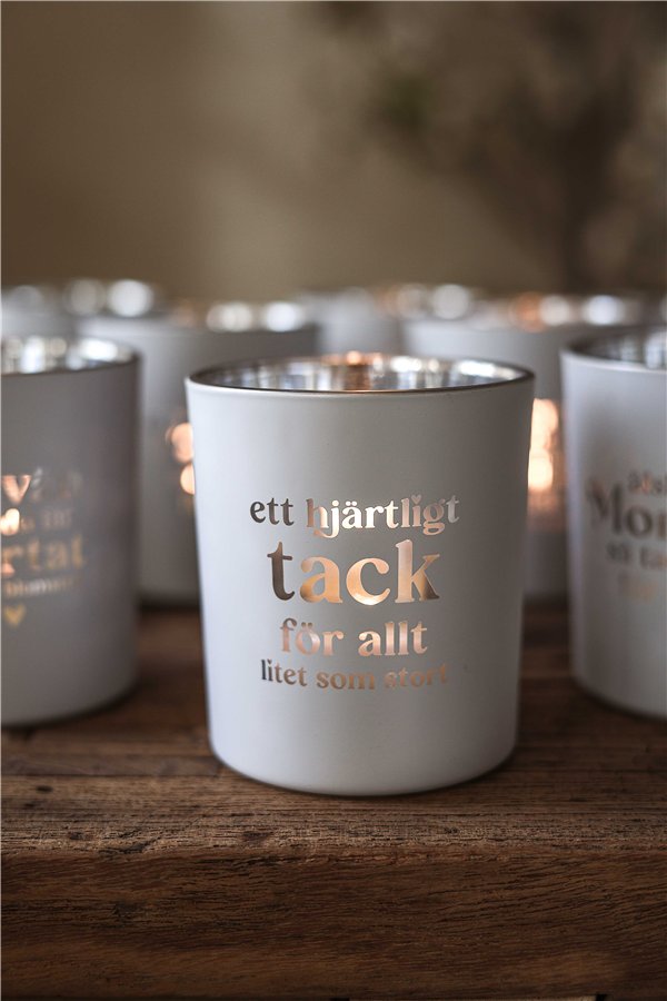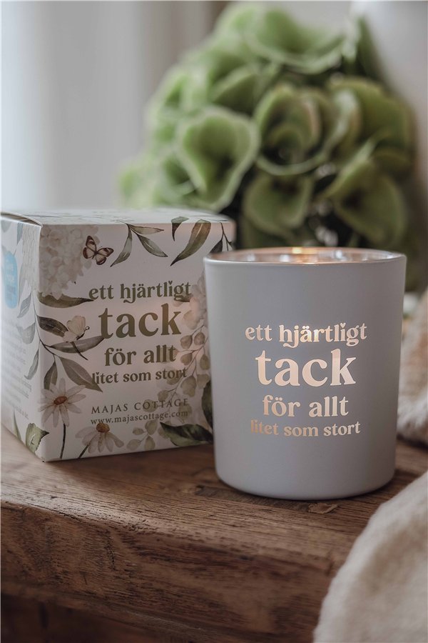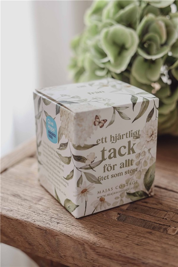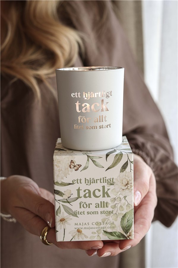 Ge bort en varm gest med Majas Cottage-lykta “Ett hjärtligt tack för allt – litet som stort”. Denna stilrena lykta i vit finish levereras i en vacker gåvobox och bär texten “Ett hjärtligt tack för allt-litet som stort”. Ett personligt tack som passar lika väl till kollegan, vännen eller någon som gjort skillnad i livet.