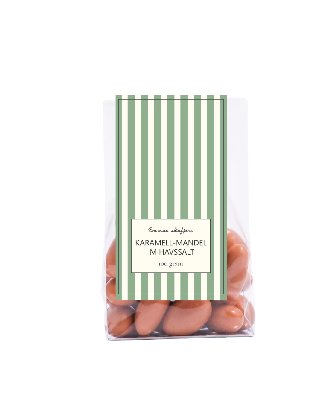 Socker, MANDEL, kakaosmör, HELMJÖLKSPULVER,glukossirap, salt, kakaomassa, förtjockningsmedel (E414), emulgeringsmedel (SOJALECITIN), färgämnen (E160c), karamellarom, naturlig vaniljarom och ytbehandlingsmedel (E904) Nettovikt: 100g