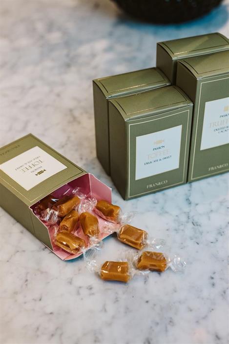 Mjuk kola med smak av passionsfrukt i lyxig förpackning.