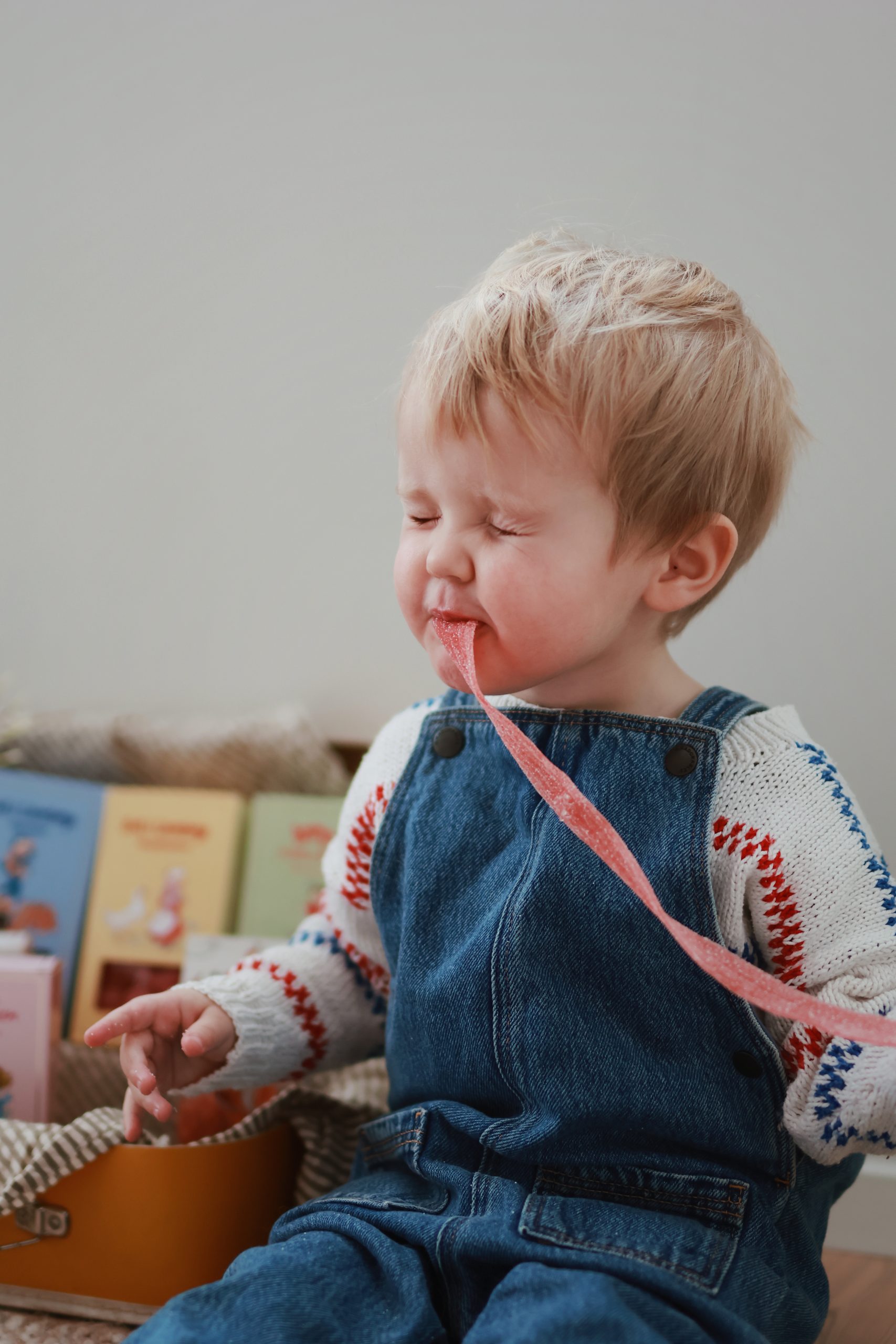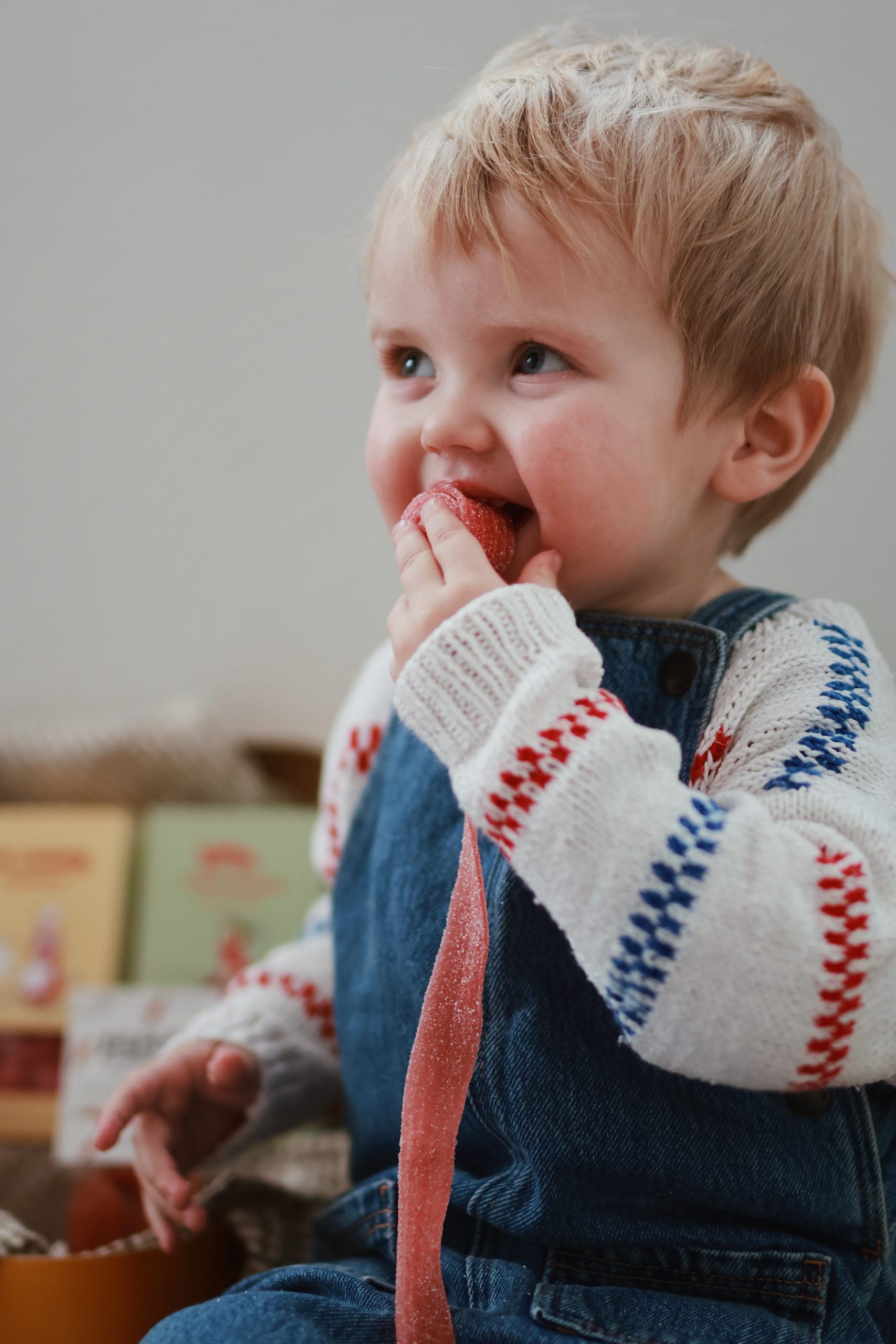Ingredienser: Socker, glukos-fruktossirap, vetemjöl, syror (äppelsyra, citronsyra), dextros palmfett*, majsstärkelse, smakämnen, frukt & grönsakskoncentrat (svarta vinbär, morot, äpple, rädisor, pumpa, tomat), antioxidationsmedel (askorbinsyra), surhetsreglerande medel (kaliumcitrat, salt). Kan innehålla spår av mjölk, soja, nötter & senap.