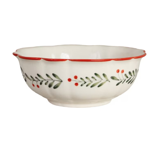 Vacker skål i stengods med handmålat mönster av blad och lingon – ett mönster som för tankarna till en traditionell jul, fylld av värme och nostalgi. Perfekt till julens alla serveringar, från risgrynsgröt till sallader. Skålen är fin att kombinera med andra delar ur serien Esther Lingon för en enhetlig dukning.