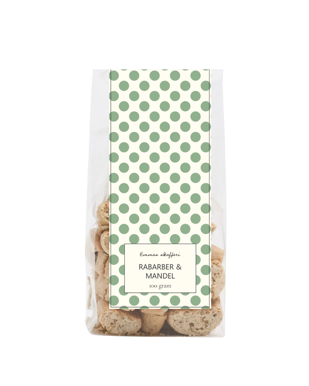 VETEmjöl, margarin (solrosolja, rapsolja (fullhärdad), vatten, kokosfett, emulgeringsmedel E322, salt, surhetsreglerande medel E330, färgämne E160a, socker, rabarber (10%), MANDEL (5%) laktosfri MJÖLK, ÄGG, socker, bakpulver, vaniljsocker och salt.