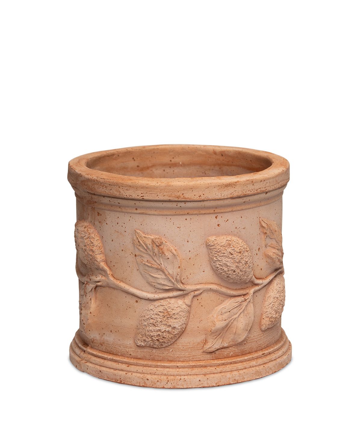 Läcker lerkruka med citronmotiv som genast för tankarna till det varma medelhavet!