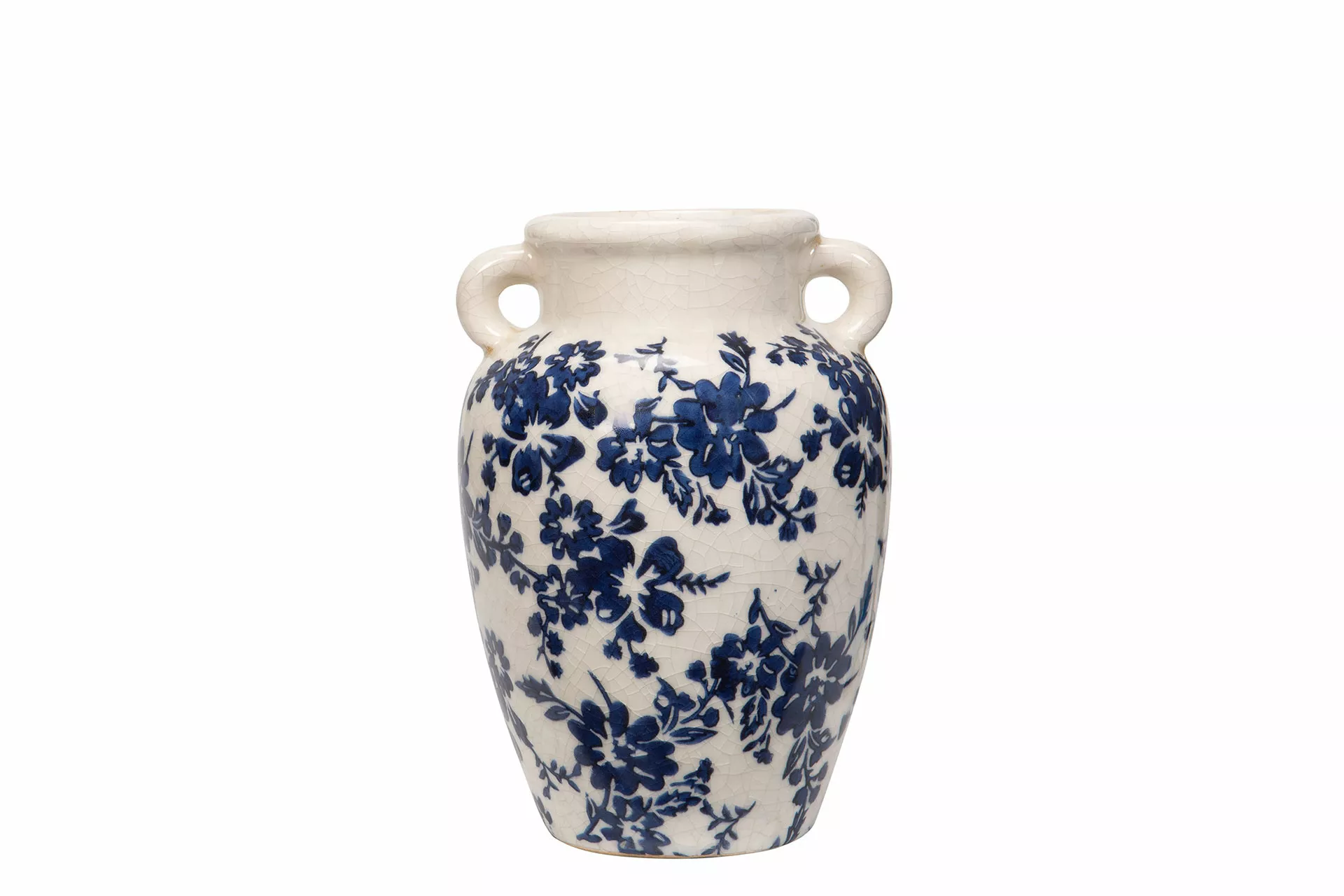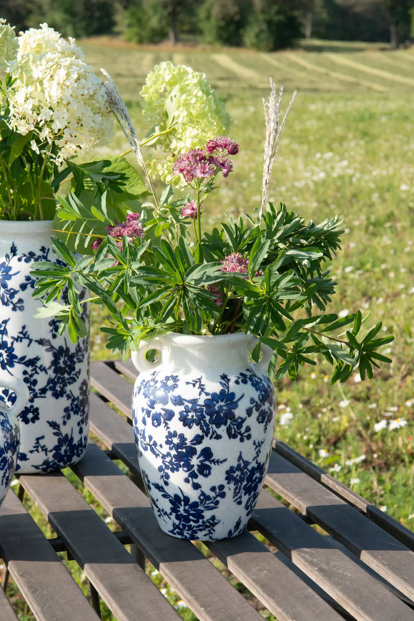 Elegant och tidlös vas i vackert blått och vitt blommönster.